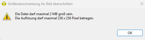 Die Datei ist auf maximal 2 MB groß beschränkt und 256x256 Pixel.